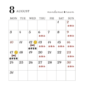 今月は皆様のご要望で、予定しておりましたお休みを縮小して営業する予定です。