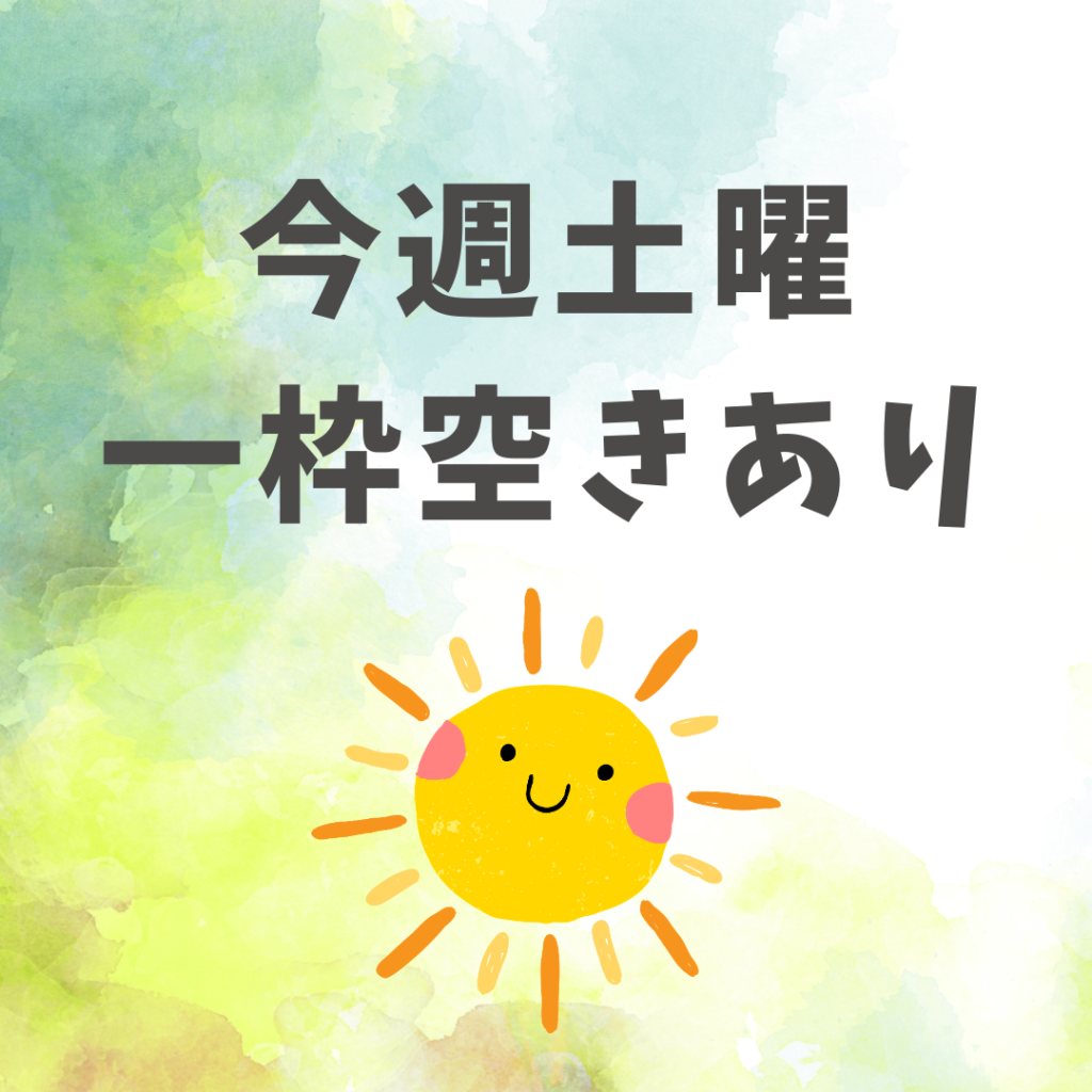 今週土曜日、12:30より【一枠のみ】ご案内可能です。